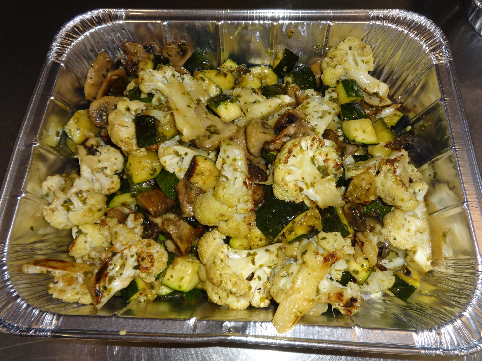 Roasted mushrooms, roasted zucchini, roasted cauliflower, parsley and garlic . Good as side entree.